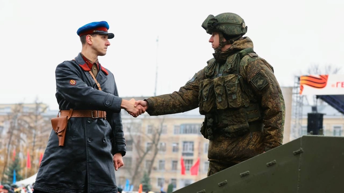 С приветственным словом к участникам обратился Герой Российской Федерации, начальник Главного штаба Всероссийского военно-патриотического общественного движения «ЮНАРМИЯ» Владислав Головин. Он отметил, что сегодня внуки и правнуки участников легендарного парада 1941 года сражаются на передовой с тем же врагом – нацизмом, только в новом обличье.